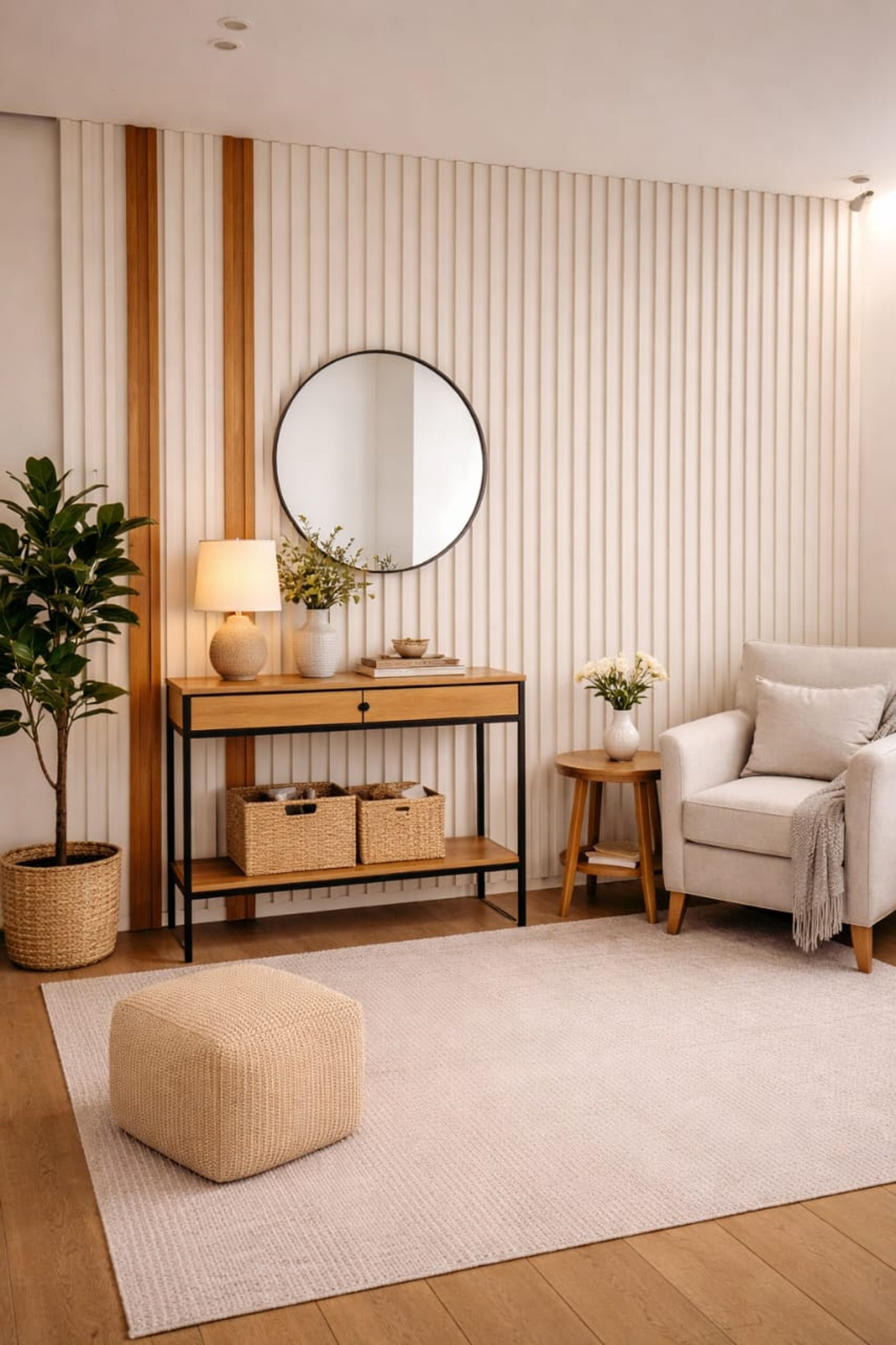 Innovative design with natural wood reinforcement.
